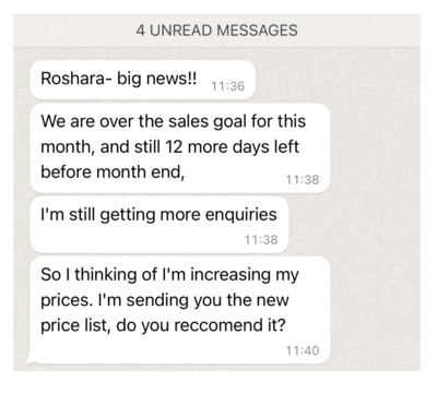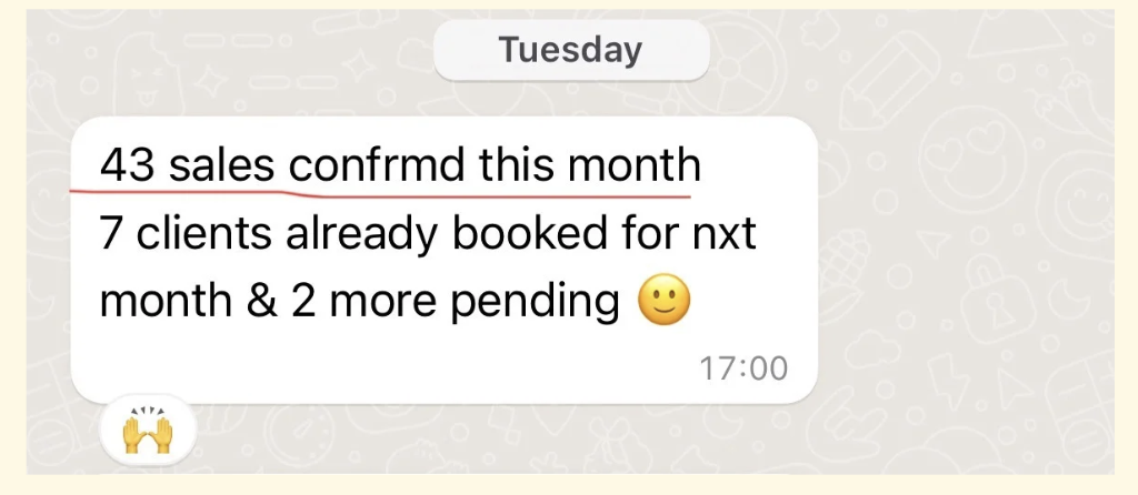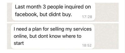 You’ll get my fail-proof strategy to turn every inquiry into a potential sale - without nagging, pushing or forcing a sale. You’ll get the exact scripts, fill-in-the-blank templates for each message (that you can easily customise for your business), so you know exactly what to say to turn every ‘hi, can I get more info on this’ into a ‘yes, I’m ready to buy’.
