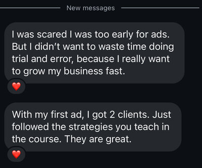 The results shared on this page are real outcomes from real clients, but your results may vary. This course gives you the exact strategy and setup to run profitable ads, along with 4 weeks of Q&A support to help you implement.