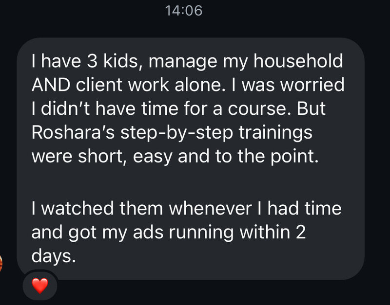 You also get 4 weekly group Q+A sessions where I'll personally answer your questions, guide you, and help you set up your ads without stress or confusion.