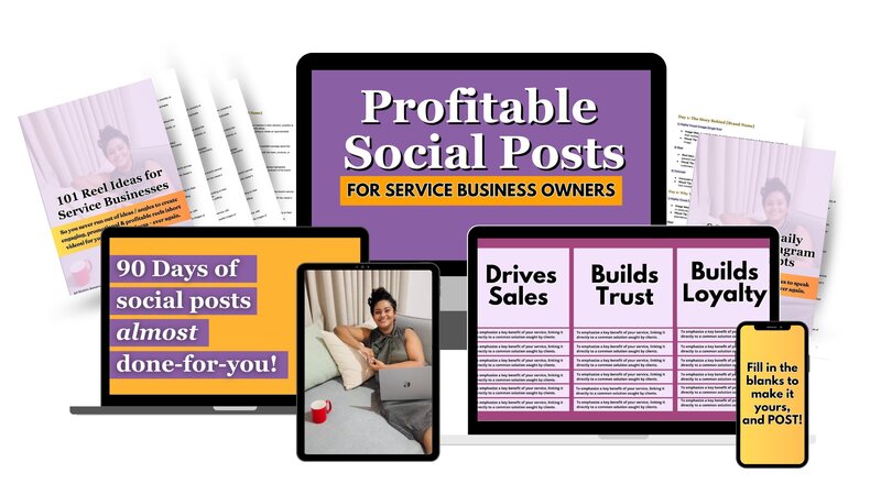 instant access to 90 days of almost done-for-you, plug-&-play social media posts & over 300 additional post ideas & templates to simplify the planning, creating & posting process.