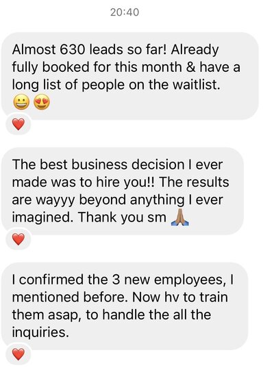 This client ‘sold-out and fully booked’ her services for months in advance and hired 5 new employees in total to manage that many clients, within 2 weeks of ‘officially’ launching online.