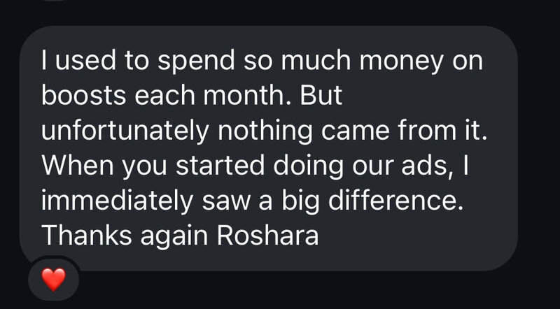 Where I answer any questions, help you set up ads, screenshare and improve your campaifns for better results - more clients, sales + income (at a lower ads cost)